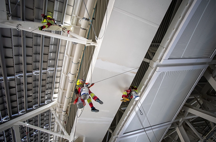 Η κάλυψη της οροφής χρησιμοποίησε επίσης το Hempadur Mastic 45880 ως αστάρι μαζί με την ίδια πυράντοχη επίστρωση και τελική επίστρωση, εξασφαλίζοντας ομοιομορφία και τα υψηλότερα πρότυπα ασφάλειας σε ολόκληρη τη δομή.
