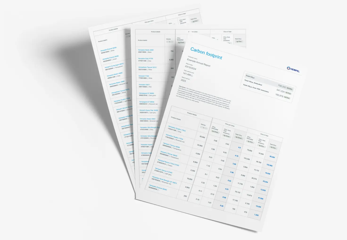 Με την Hempel, μπορείτε να δείτε τα δεδομένα του Ανθρακικού Αποτυπώματος στα Δελτία Δεδομένων Προϊόντων (PDS) μας, αλλά και να λάβετε μια ολοκληρωμένη αναφορά Ανθρακικού Αποτυπώματος για ένα προϊόν, σύστημα βαφής, έργο ή ετήσια αγορά.