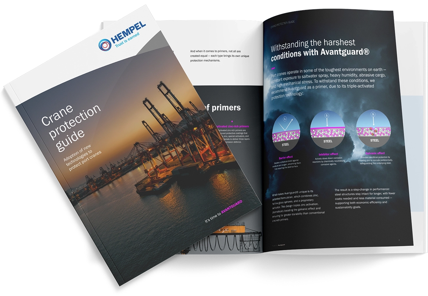 Da Hempel, offriamo una protezione superiore contro la corrosione per le gru portuali. I nostri rivestimenti avanzati proteggono le vostre attrezzature anche nelle condizioni più difficili, aiutando le vostre gru a dare il massimo anno dopo anno.