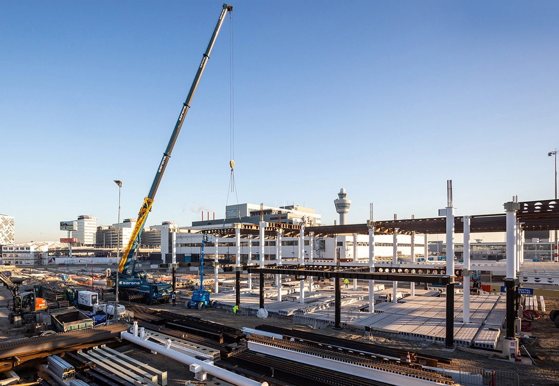 O revestimento de proteção passiva contra incêndios Hempafire Pro 315 Fast Dry maximiza a produtividade na construção da expansão de um grande aeroporto internacional.