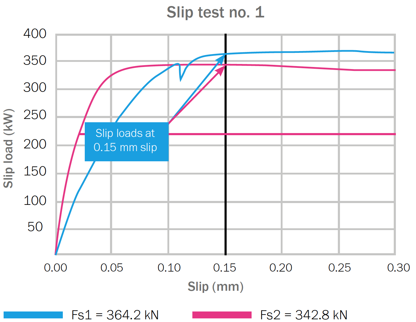 The characteristic slip factor of 0.46 is 15 percent higher than the required slip factor of 0.40 for friction Class B.